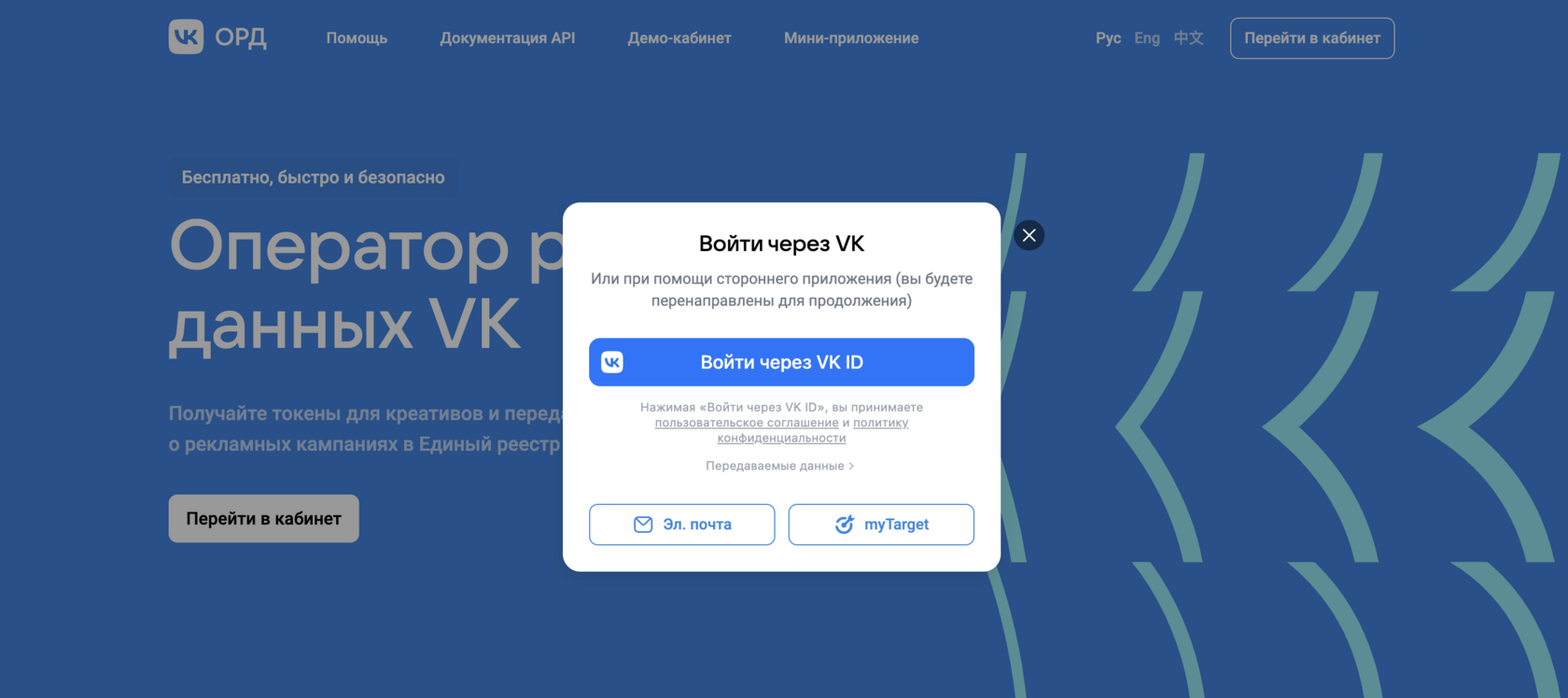 - сгенерирует ERID — уникальный идентификатор рекламного материала;